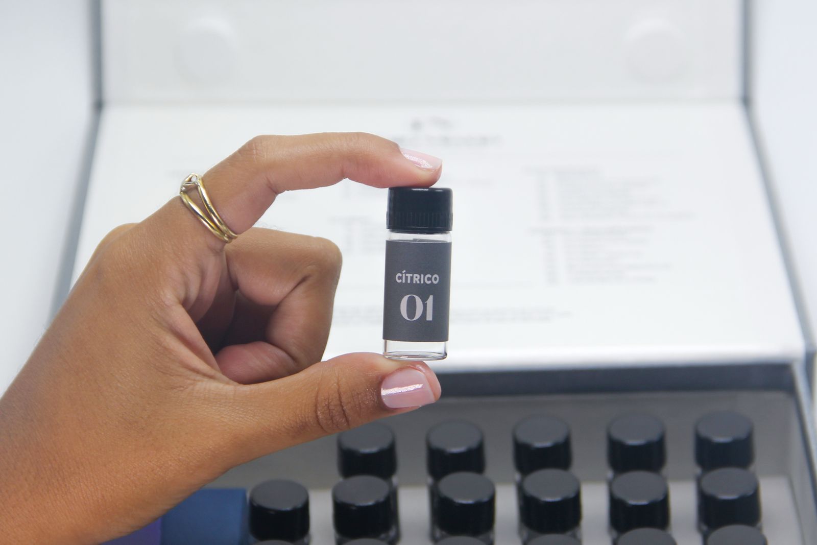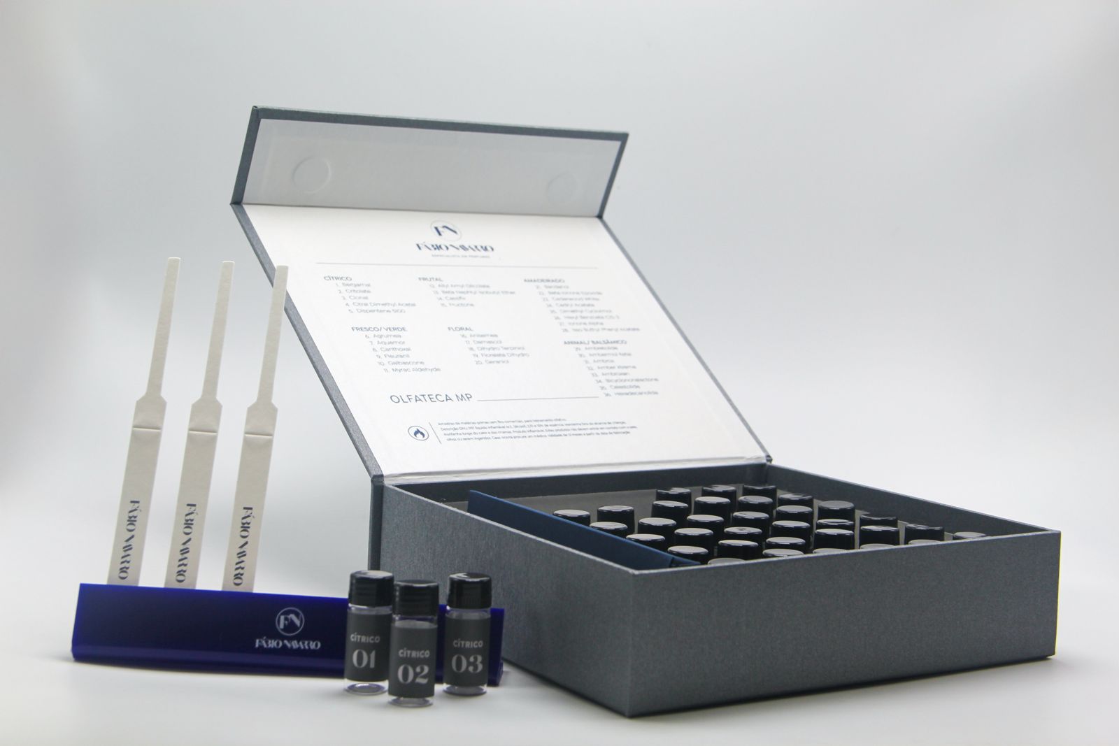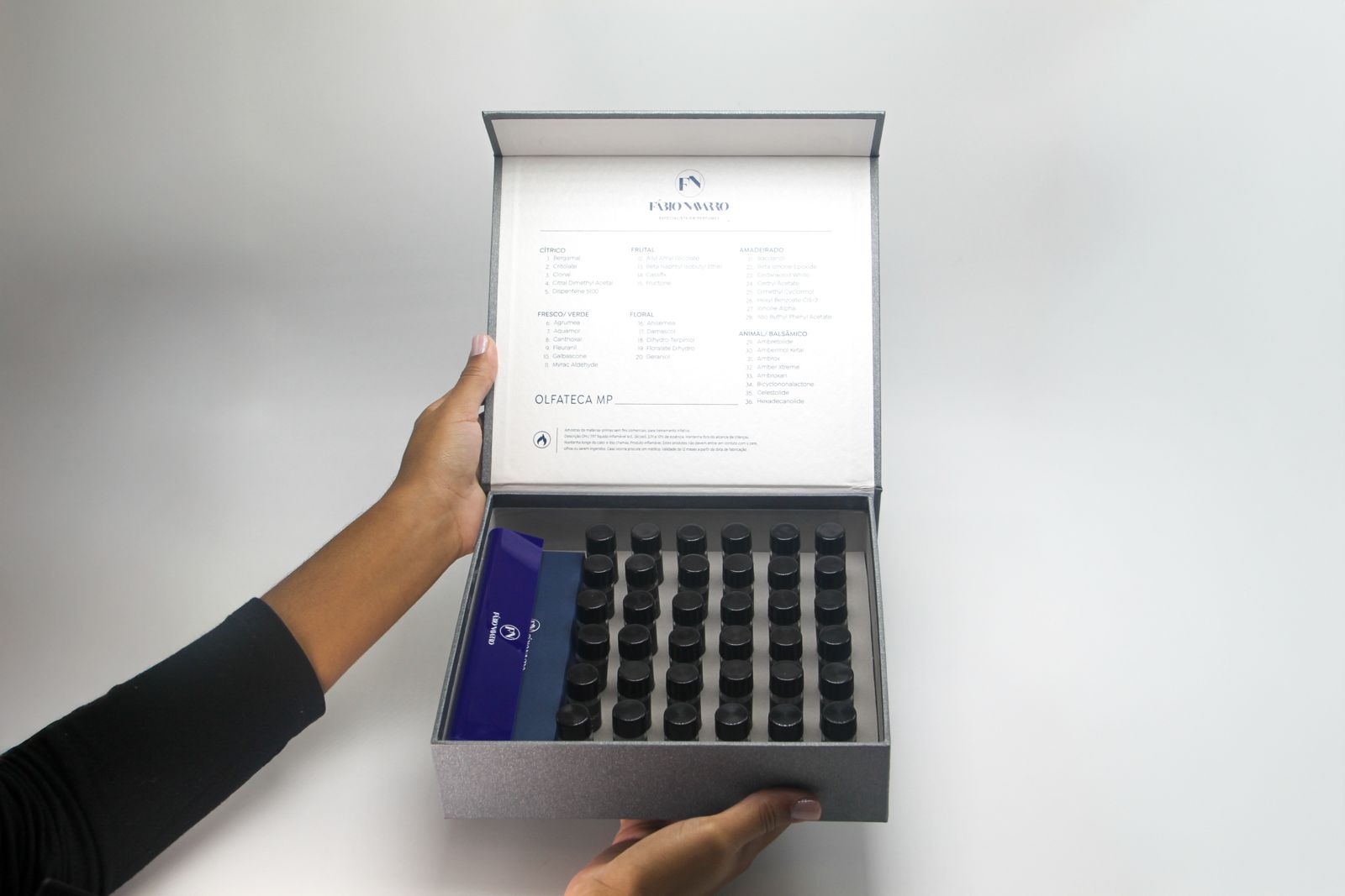 Matérias-primas sintéticas, divididos em 5 grupos olfativos (Cítrico, Frutal, Amadeirado, Fresco / Verde, Floral e Animal / Balsâmico) que te auxiliarão na sequência do seu desenvolvimento da sua biblioteca olfativa, ou aperfeiçoamento do seu conhecimento olfativo.